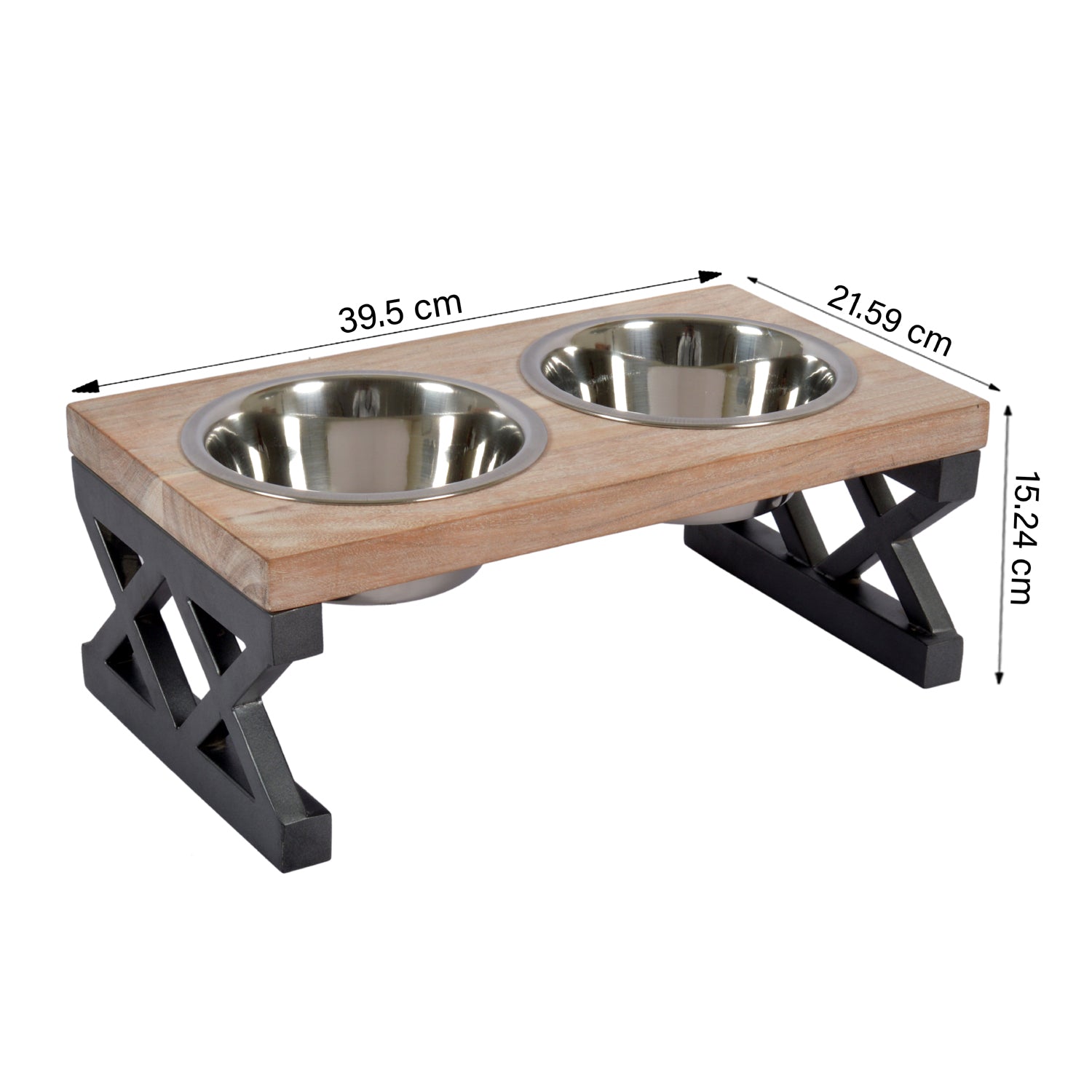 Made from chic mango wood, this eco-friendly feeder adds sophistication and durability, with dishwasher-safe bowls for easy cleanup.