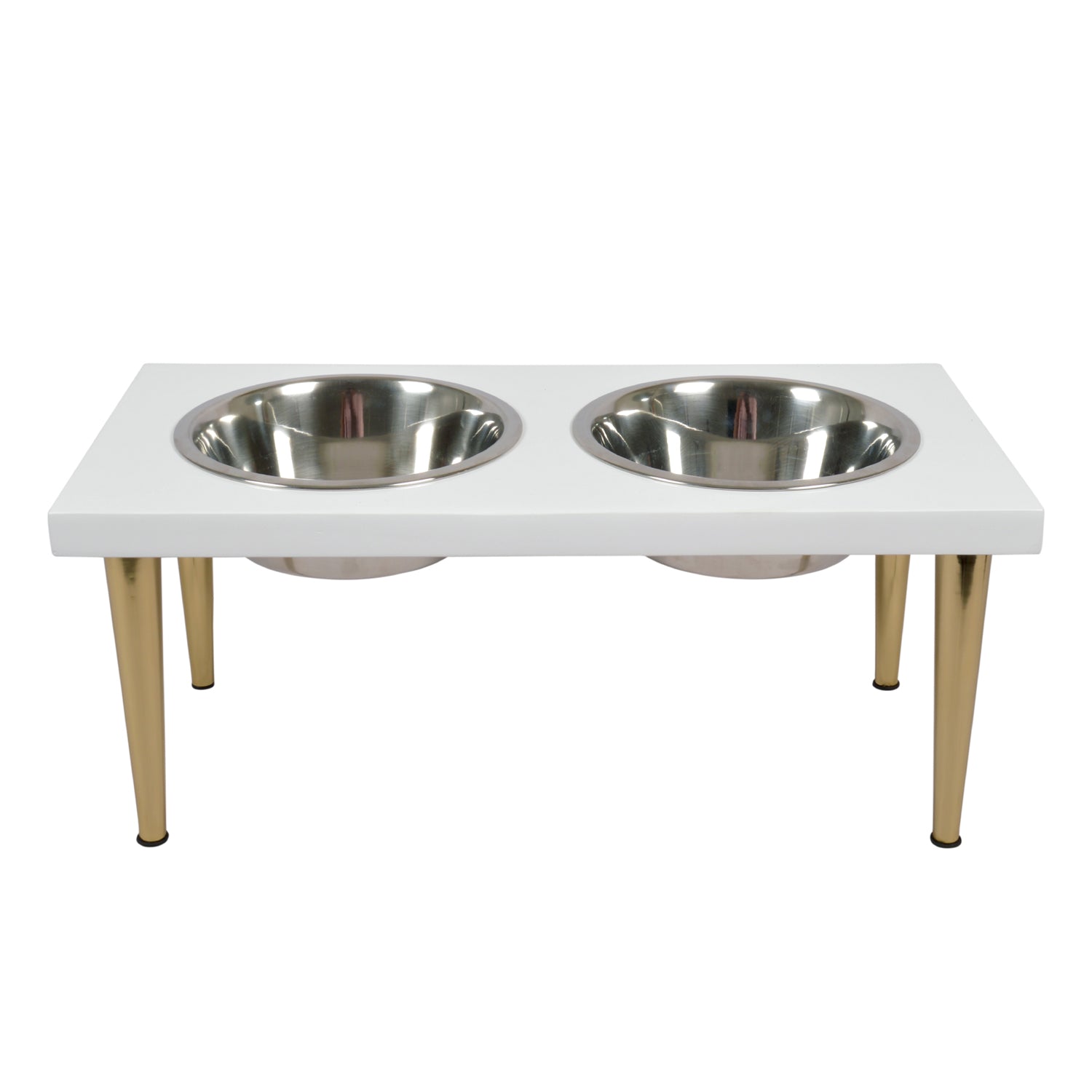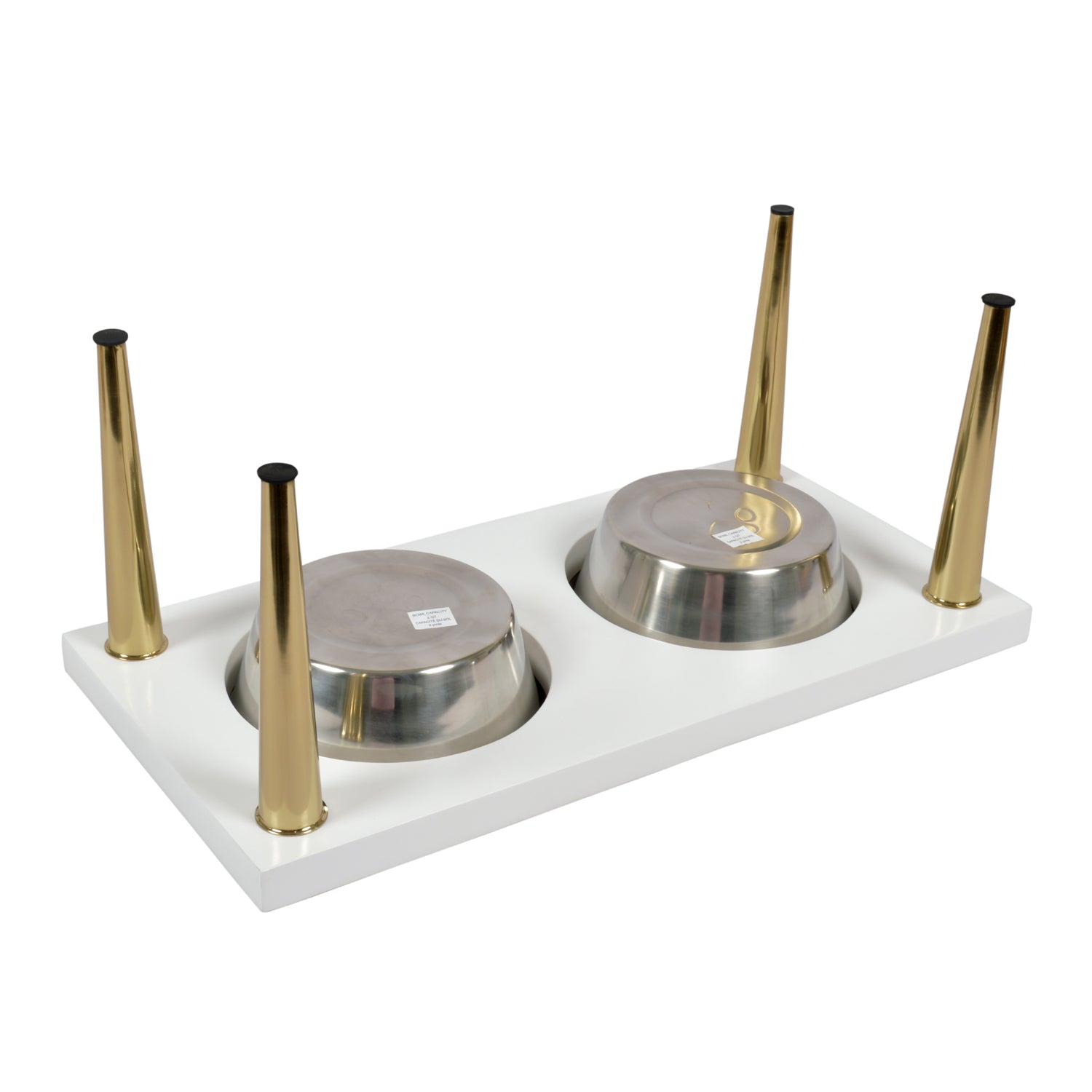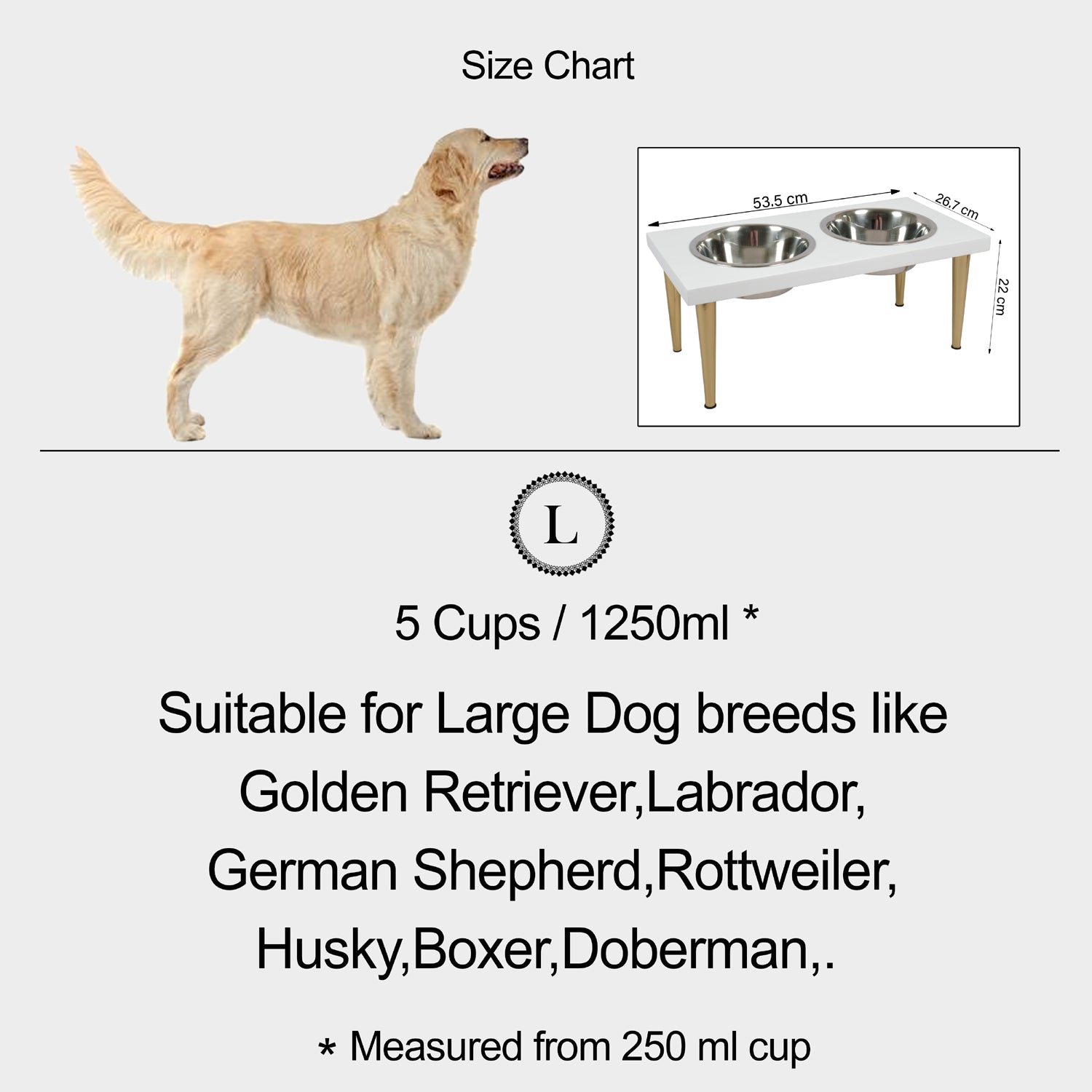 Our Double Bowl Dog Feeder Stand makes portioning food easy for water, wet and dry food, perfect for your pet's needs.